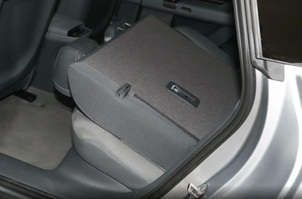 坐进车内,最直观的感受是空间利用率挺高。以身高180cm的体验者为例,调整好驾驶位后,前排头部空间剩余约一拳三指,腿部空间自然宽裕;来到后排,膝部空间能保持在一拳半到两拳之间,头部空间也能留出一拳两指左右,整体乘坐感受不会觉得压抑。得益于2950mm的轴距和合理的座椅布局,即便是满载五人长途出行,后排乘客也不会有太强的局促感。后备厢常规容积347L,后排座椅支持40:60放倒,扩展后装载能力进一步提升,适合周末出游携带装备或者偶尔搬运大件物品。内饰用料以仿皮座椅为主,前排座椅支持加热通风以及主驾记忆功能,方向盘也带有加热和记忆,日常舒适性配置比较到位。