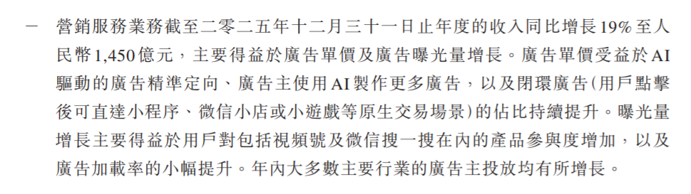 其次,营销服务收入,也就是广告收入1450亿,同比增长19%,这里AI立了大功。