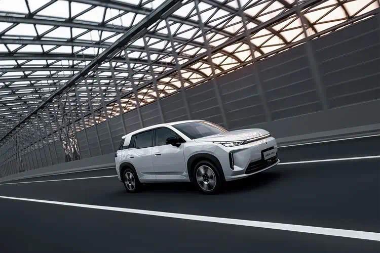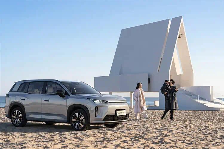 在外观方面,它继续保持着埃安AION i60车型的设计风格,融合了传祺向往系列和AION纯电系列的设计元素,新车前脸采用封闭式格栅设计,搭配贯穿式灯带,与两侧“Y”形灯组相连,拉宽视觉宽度的同时,彰显出纯电车型的独特气质。